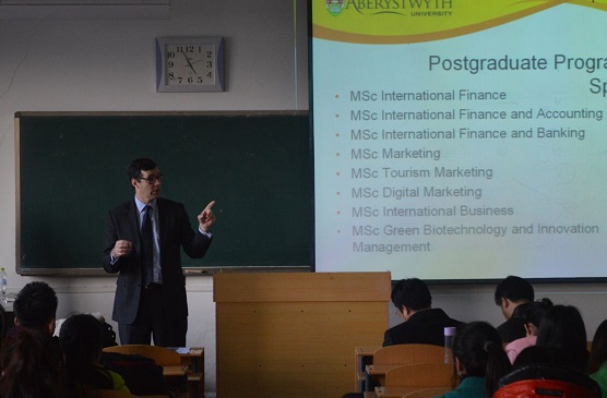 首先,周鑫处长代表公司对英国亚伯大学代表团的到来表示热烈欢迎。随后Steven教授做了题为“区域经济发展研究”的精彩报告,介绍了亚伯大学商公司的专业、招生录取以及亚伯大学员工语言中心的情况。最后就同学们关心的留学问题进行了面对面的交流。