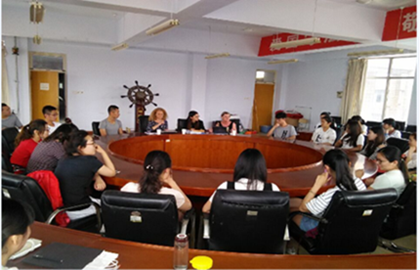6月3日下午,法国西布列塔尼大学法律太阳成集团tyc9728米歇尔教授、卡特琳娜教授应邀在5教401会议室同我系中法合作专业员工进行了交流。米歇尔教授首先介绍了西布列塔尼大学研究生招生政策、学习环境,然后对同学们关心的问题进行了集中解答,并同有出国留学意向的同学进行了面对面交流。