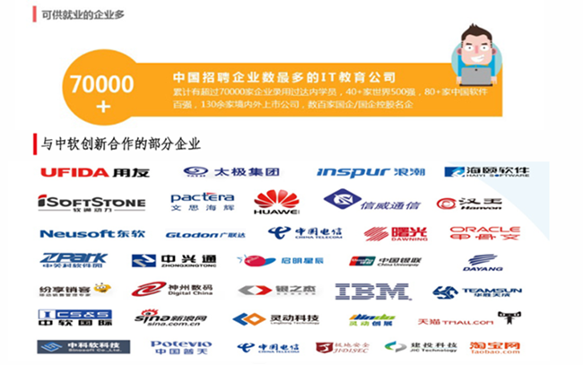 综合教育解决方案供应商,致力于网络信息安全、移动互联网、云计算、大数据、电子商务网络营销等前沿科技领域的软件开发、电子商务及项目管理等人才培养,拥有中关村软件外包资源平台、中小型企业发展促进人才服务平台,是一家集软件研发、服务外包、岗前实训、系统集成于一体的高新技术研发类企业。中软创新总部设在北京中关村软件园,在郑州、西安、南宁、上海等地设有分公司。