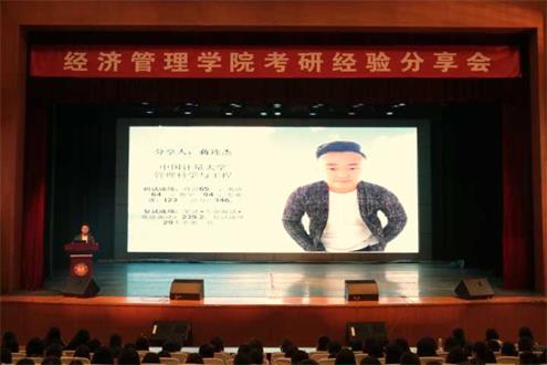 会议开始,蒋连杰、肖莎等同学以自身为例,对政治、英语、数学、专业课的复习分享了自己的心得,提出了建立错题集、坚持背诵、多练真题等实质性建议;复试方面,他们就有关复试前如何结合自身情况报考公司、调剂公司等事项做出详细的介绍,并向同学们提出“惜时、笃学、志远、博学”的建议。随后,高黎、孙悦同学则从考研心态方面传授经验,向同学们提出抓住时间、坚持不懈、潜心求学、戒骄戒躁,进而保持好平稳的心态的建议。最后,张娜娜老师从就业形式的严峻性出发,强调了考研的必要性,表达了对考研学子的殷切希望。
