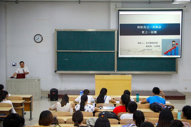 第五讲的主题是“再给自己一次机会,更上一层楼”。首先,王老师从员工到社会最终的走向谈起,介绍了专科员工毕业后发展的两个大方向:升学和就业,然后以具体数据论证了专科员工就业的压力和现实状况,同时举例说明更高学历层次的就业优势;从而引出,专科员工还有一次提升自己学历的机会:3+2专升本,通过专升本获得本科学历,再然后可以继续升学读研;对于专升本王老师以现实数据详细分析了公司近五年专升本情况,介绍了临沂大学、德州公司、泰山公司、山东女子公司、山东财经大学东方公司的近几年最低录取分数和招生人数等基本情况,解读了我省专升本招生考试情况和政策,为员工提供了详细的招生公司、专业、人数、分数线、考试科目、考试大纲、参考书目等数据信息;最后,鼓励同学们积极报名参加专升本考试,提升自己学历更上一层楼,并给出了自己的复习备考策略和建议。