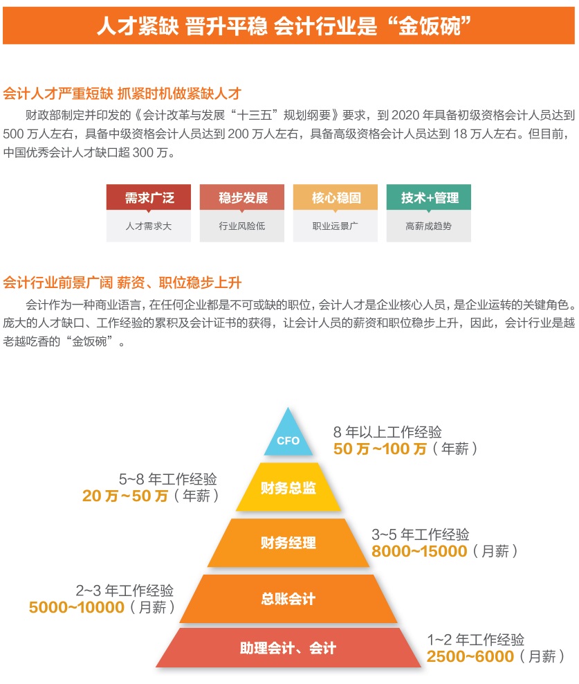会计(金融会计)是公司太阳成集团tyc9728在会计专业基础上,与美国上市公司、国内最大的IT教育集团——达内时代科技集团联合设立。本专业旨在培养职业操守高、专业技能强、应变能力灵活,具备务实创新意识的高素质复合型人才,使员工能够在当下财会人才缺口较大的互联网行业、金融行业、房地产行业以及服务业等热点领域胜任电算化会计核算、纳税申报、税收筹划、企业投资、融资、审计、成本核算等核心工作,从容驾驭企事业单位及政府机关各类财会岗位。本专业具备以下特色: