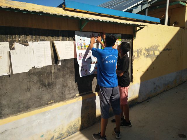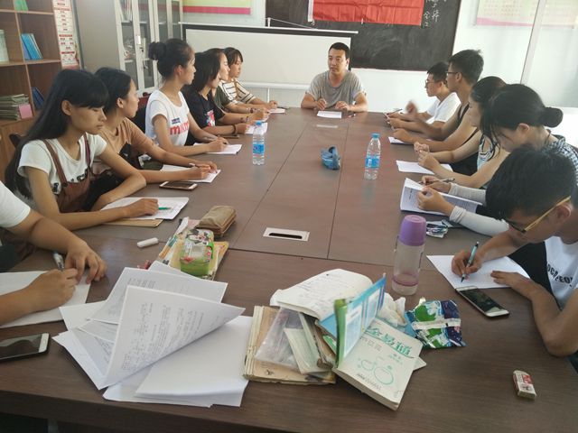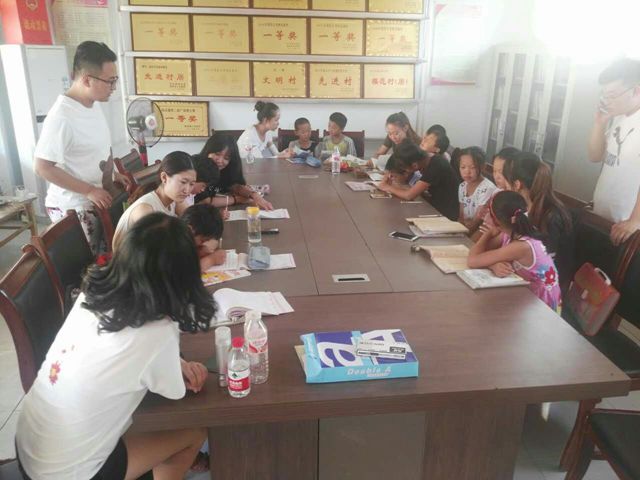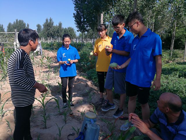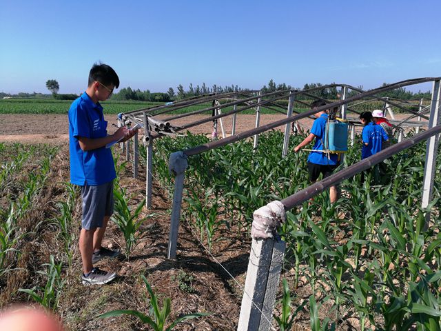 吃过早饭,队员们根据分工开展各自的工作。队长赵鲁豫带领四名队员进入田地进行实地调研,走访辛勤劳作的村民,亲身体验喷洒农药、摘豆角等农作活动,向他们询问庄稼收成等问题并发放填写调查问卷。与此同时,其余的队员们在村活动室辅导村里小员工复习课本知识,做数学题、背英语单词、读汉字。还有两位队员受村长邀请到家里教村民们练习广场舞。临近中午,队员们又一起给村民们宣传家禽传染、水污染、农业污染防治措施。上午的实践活动结束后,队员们在驻地集合,总结上午的实践活动开展情况,对在实践过程中发现的问题,队员们各抒己见,及时地将问题解决掉。随后,大家开始打扫房间,整理相关物品,为下午的实践活动开展做好准备。中午,带队的张智涛老师亲自下厨犒劳大家。下午,按照本次社会实践的安排,部分队员还是按照上午的计划认真地辅导孩子们的功课,他们通过孩子们一个个求知的眼神,充分体会到了村里的孩子们对知识的渴望。另外两位队员也是按时到达村长家里继续指导广场舞的排练。到了傍晚,村民们纷纷来到村里的小广场,队员们继续指导大家跳广场舞。