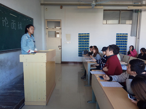 比赛伊始,由主持人王名楠详细说明此次面试的要求。接着,参赛选手们各展风采,通过慷慨激昂的话语简要介绍了自己。每个选手都在用心演讲,以情发声,用饱满的热情展现演讲的魅力,赢得了观众的阵阵掌声。评委老师结合自身经历以及所感所想,对参赛选手做出评价,他们充分肯定了参赛选手在辩论时的活跃表现,同时也提出了不足之处,希望选手们能正视自我,力争做得更好。