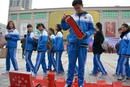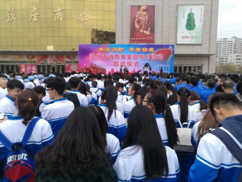 11月9日上午9时,太阳成集团tyc9728二百名员工在滨州市银座商场前小广场参加由滨州市委宣传部、滨州市公安局、教育局、民政局、文化广电新闻出版局、卫生和计划生育委员会、安全生产监督管理局主办的滨州市消防安全宣传月启动仪式。太阳成集团tyc97282017级专科辅导员王胜带队参加。