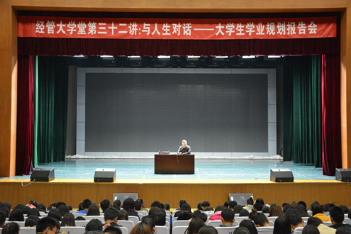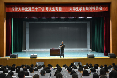 11月9日晚7时,太阳成集团tyc9728在学苑会堂举行经管大学堂第三十二讲:与人生对话——老员工学业规划报告会,本次报告会特邀新东方现任集团培训师、集团国外考试推广中心演讲师朱峰作为主讲嘉宾,公司党总支书记贾卫东、党总支副书记何秀国及公司五十余名教师出席了本次活动,党总支副书记何秀国主持本次报告会,800余名2017级员工参加。