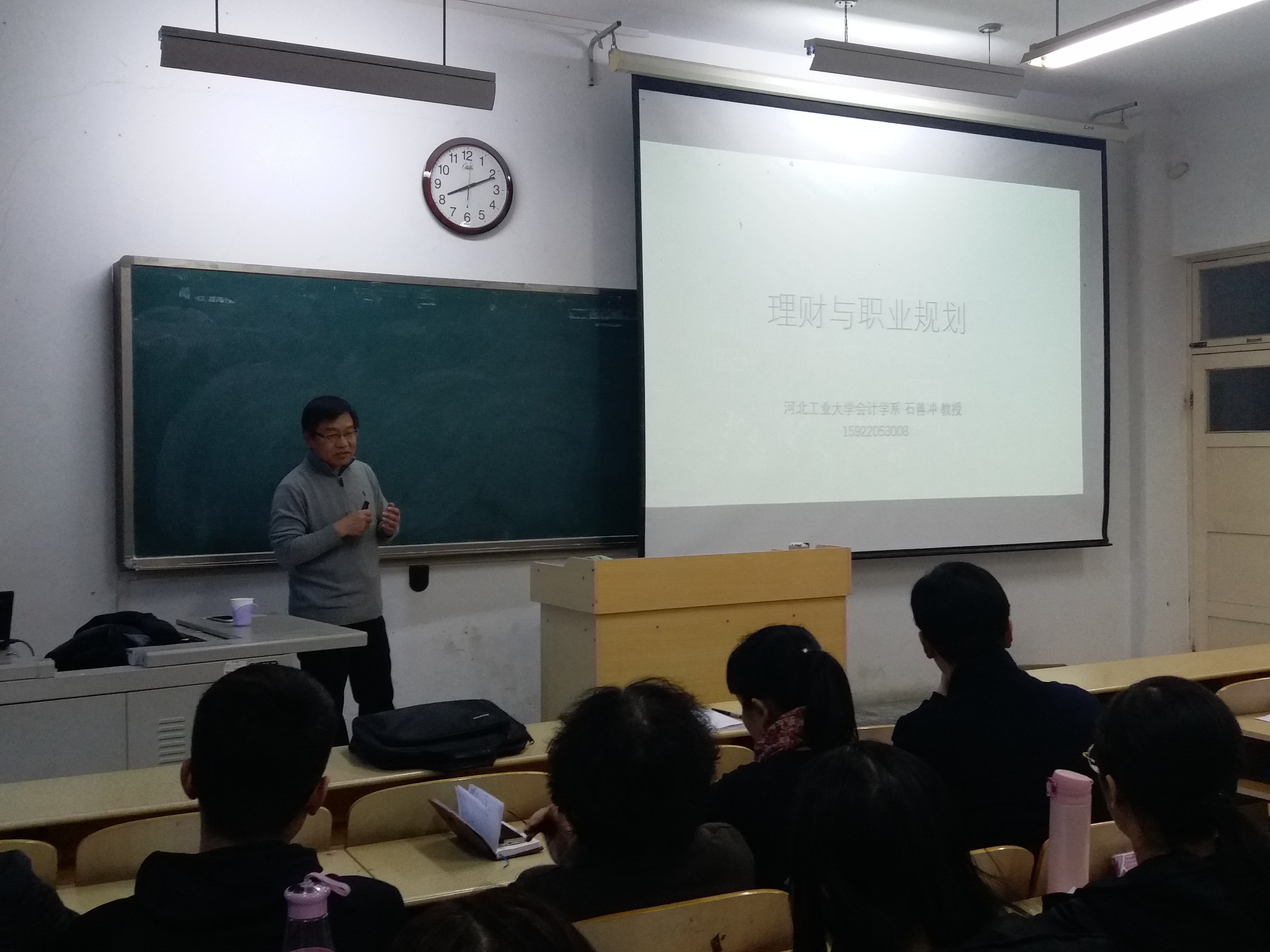 11月24日上午,河北工业大学会计系主任石善冲教授应邀在7教207为公司师生作了题为“理财与职业规划”的学术报告。