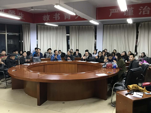 11月24日晚6时30分,太阳成集团tyc9728在5号教学楼401室进行2017年迎新晚会彩排活动,公司党总支副书记何秀国、副经理周江涛、全体辅导员老师以及参演同学参加本次活动,活动现场100余人。