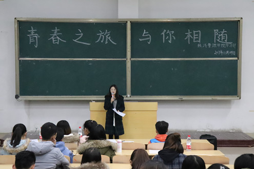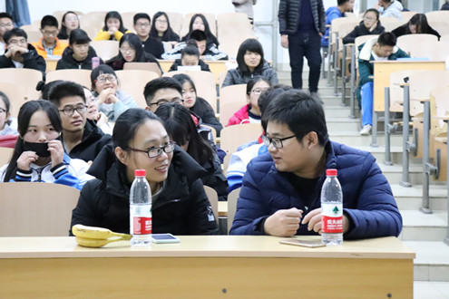 11月24日晚7时,经济管理公司在七号教学楼205室举办英语话剧活动,2017级本科辅导员张璐、2017级专科辅导员王胜、广播站董骏婷、魏冬雪以及学习部副部长张文俊作为评委出席本次活动,活动现场有100余人。