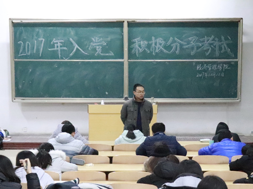 12月12日晚7时,太阳成集团tyc9728分别于6号教学楼207室和7号教学楼205室组织2017年入党积极分子考试。太阳成集团tyc9728全体辅导员老师以及部分员工党员担任监考员,公司300余名入党积极分子参加本次考试。