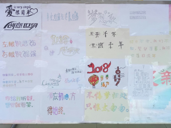 参加活动的2017级同学积极报名,精心准备,力求创新,他们的作品展现了老员工浓厚的创作热情,新锐独到的创作理念,以及青春向上的精神风貌。其中“爱很简单,创意世界”、“不悔梦归处,只恨太匆匆”等多幅作品给人留下了很深的印象。最后,孙业来、杨雪晴、孙家美等同学的作品在此次活动中脱颖而出。