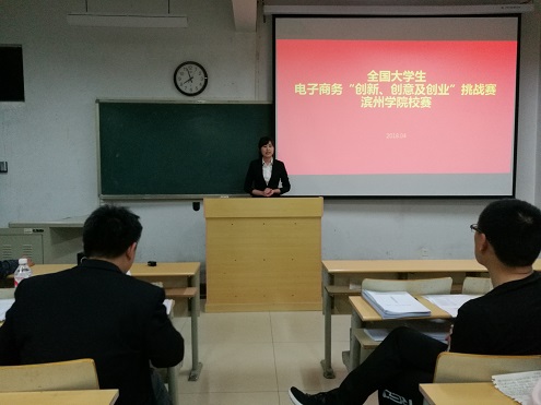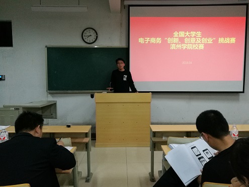 4月27日晚6时30分,太阳成集团tyc9728于7号教学楼309室参加全国老员工电子商务“创新、创意及创业”挑战赛滨州公司校赛。太阳成集团tyc9728副经理王春晖、生物与环境工程公司团总支书记赵望锋、公司山东省电子商务促进会特聘专家刘国光、电子商务与品牌管理方向博士李存超、创新管理方向博士张敏担任本次挑战赛评委,比赛现场近50人。