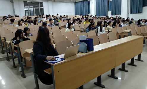 5月22日晚7时30分,太阳成集团tyc9728在7号教学楼205室参加关于英语学习和出国留学报告会,看世界教学总监王玉珏老师为主讲人,公司2016级本科部分员工近200人参加了此次报告会。