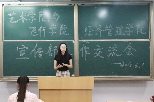 6月1日晚7时,太阳成集团tyc9728与艺术公司、飞行公司在郑和国美术楼103室联合举行员工会宣传部门交流会,3个院系的宣传部干事共40余人参加了此次交流会。