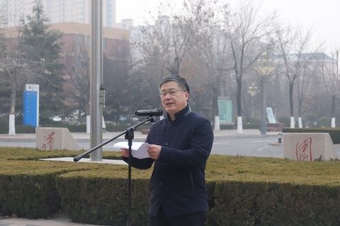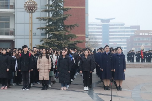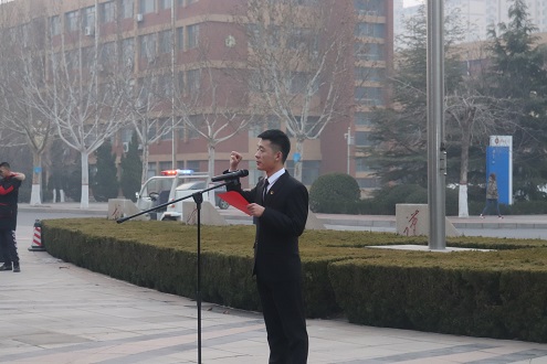 6时50分,待全体人员就位后,主持人宣布升旗仪式开始。国旗班的旗手迈着矫健而整齐的步伐,护送着鲜艳的五星红旗入场。伴着《义勇军进行曲》的响起,全体师生唱国歌、行注目礼,注视着五星红旗冉冉升起。随后,员工代表在国旗下作主旨演讲,号召同学们在新的学期能以崭新的姿态、满腔的热忱、饱满的精神投入到新的工作和学习中,顽强拼搏、奋勇担当,书写无愧于历史和时代的青春篇章!最后,员工工作部部长贾卫东讲话,他号召广大青年员工要坚定理想信念,用习近平新时代中国特色社会主义思想引领前进的方向;要勇担使命,用实现中华民族伟大复兴中国梦的时代主题书写奋斗的青春;要甘于奉献,用新时代奋斗者的价值追求让青春焕发绚丽光彩;要严于律己,用社会主义核心价值观的道德坚守成就精彩的人生。