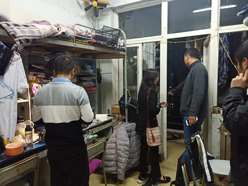 本次消防安全专项整治活动共分为三个阶段。第一阶段,由公司员工会宿管部对各员工宿舍进行排查,包括排查各类违规电器、督促同学们清理阳台杂物及宿舍内易燃易爆物品、督导同学们规范使用插排、网线等,完成公司各员工宿舍情况的初步摸排;第二阶段,由班主任通过主题班会的形式开展宿舍安全教育,普及宿舍安全知识,教育员工遵守宿舍安全管理规定,并且员工本人签署了《不私藏和使用违规器具保证书》。班会之后,各班主任带领本班班干部、宿舍安全员对本班所有宿舍进行了全面的宿舍消防安全隐患排查,彻底摸清本班宿舍存在的问题并提出整改要求;第三阶段,由公司党总支副书记何秀国带队,各年级辅导员与员工会干部分为4个小组到公司各宿舍楼展开检查,检查开始前何书记强调,所有检查人员务必认真对待,严格把关,对宿舍存在安全隐患的同学进行严肃批评教育。在检查过程中,老师们重点对宿舍内是否存有大功率违规电器、烟酒违禁物品、乱拉乱放电线插排等隐患进行排查,针对发现的问题提出整改意见,并要求及时落实,坚决消除安全隐患,对违规物品进行登记、没收,还嘱咐同学们要注意防火防盗、增强安全意识,主动上报存在的安全隐患,杜绝消防事故发生。