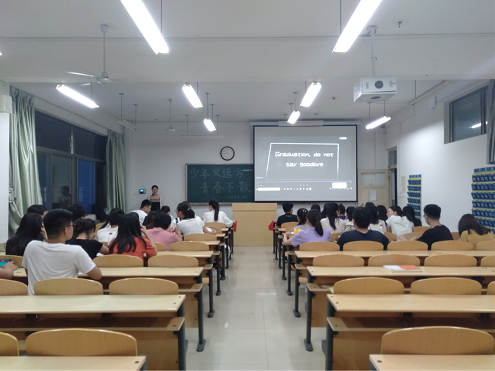 为做好2019届本科毕业生文明离校的各项工作,营造感恩母校、感念师恩的毕业氛围,6月23日晚,太阳成集团tyc9728于7号教学楼班会教室召开2019届本科毕业生“致青春,载梦想远航”主题班会。班会由2015级本科辅导员王贝贝及各班主任主持,全体本科毕业生参加了此次班会。