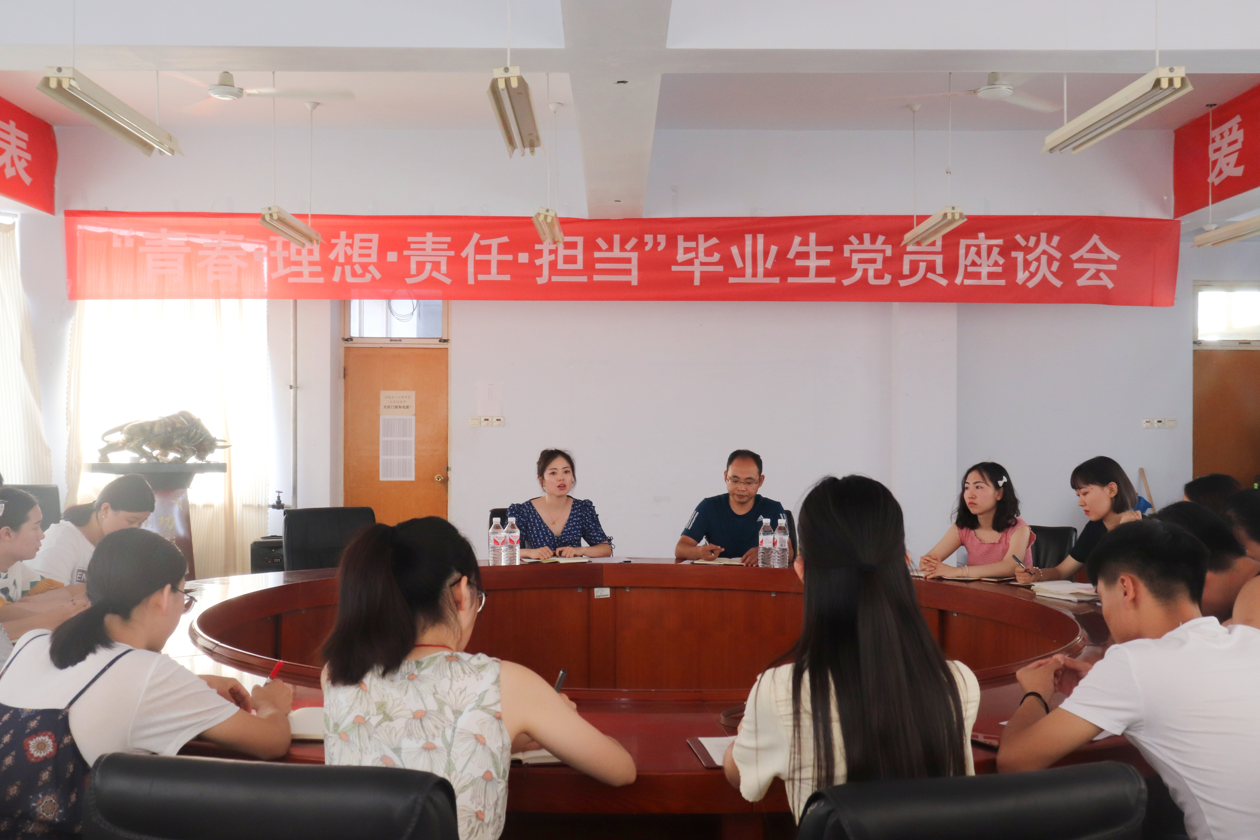 为增强毕业生党员的身份感和使命感,提高毕业生党员的责任意识与担当意识,6月25日下午,太阳成集团tyc9728于5教401会议室召开“青春·理想·责任·担当”2019届本科毕业生党员座谈会,公司党总支副书记何秀国、2015级本科辅导员王贝贝及全体毕业生党员参加了座谈会。本次座谈会由辅导员王贝贝主持。