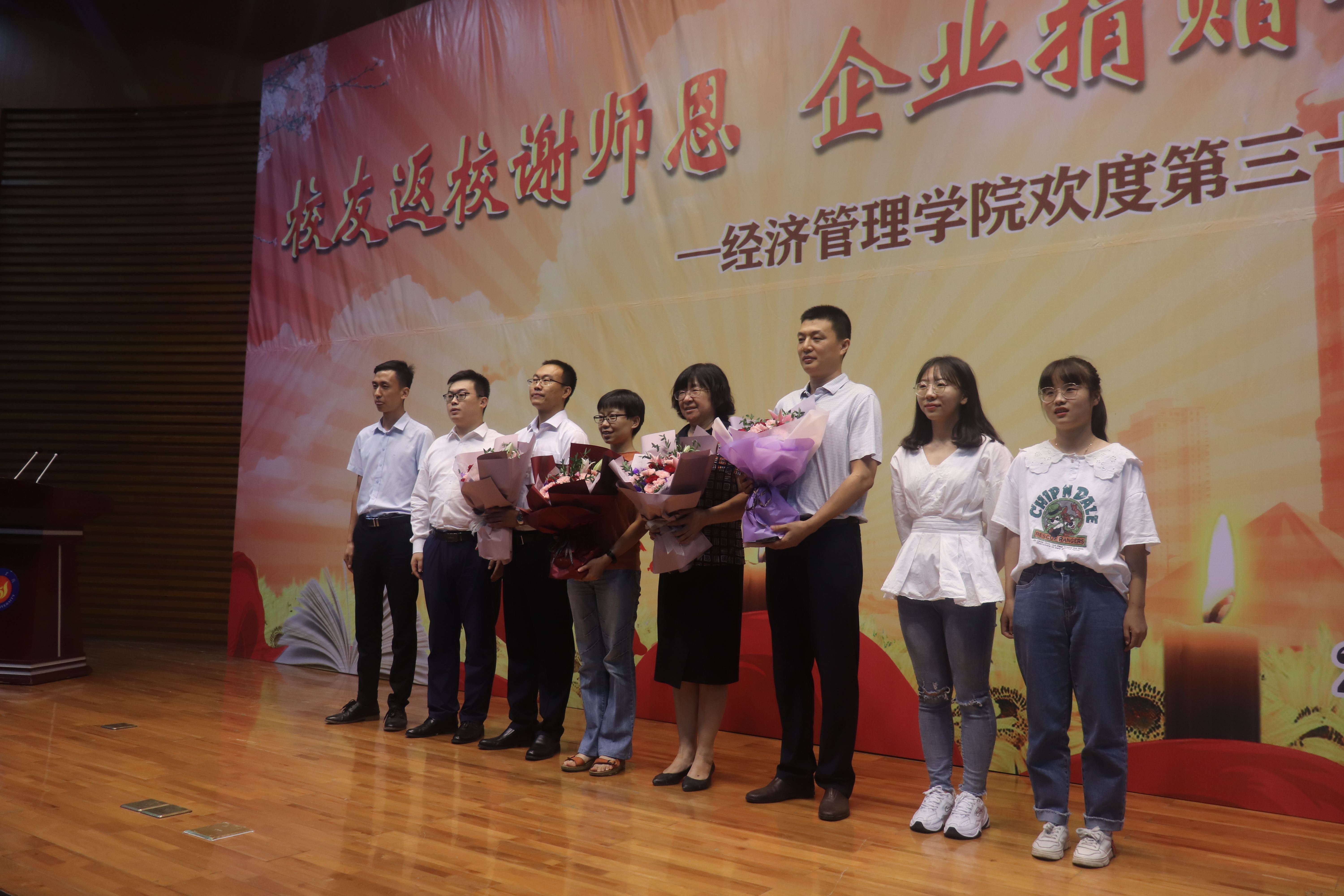 讲话后,合作企业滨州中成教育培训公司、滨州市滨城区睿萱职业技能培训公司、风尚教育职业技能培训公司、滨州市丰全职业培训公司代表依次上台进行捐赠,公司党总支书记崔玉海老师上台接受捐赠。合作企业代表、滨州中成教育培训公司韩荣艳董事长发言,向老师致以节日的问候,对返校员工的到来表示欢迎,并表示希望捐赠活动能引起社会更多的企业关心教育、回馈教育,促进教育事业的大发展。最后祝愿经管公司取得新的辉煌。