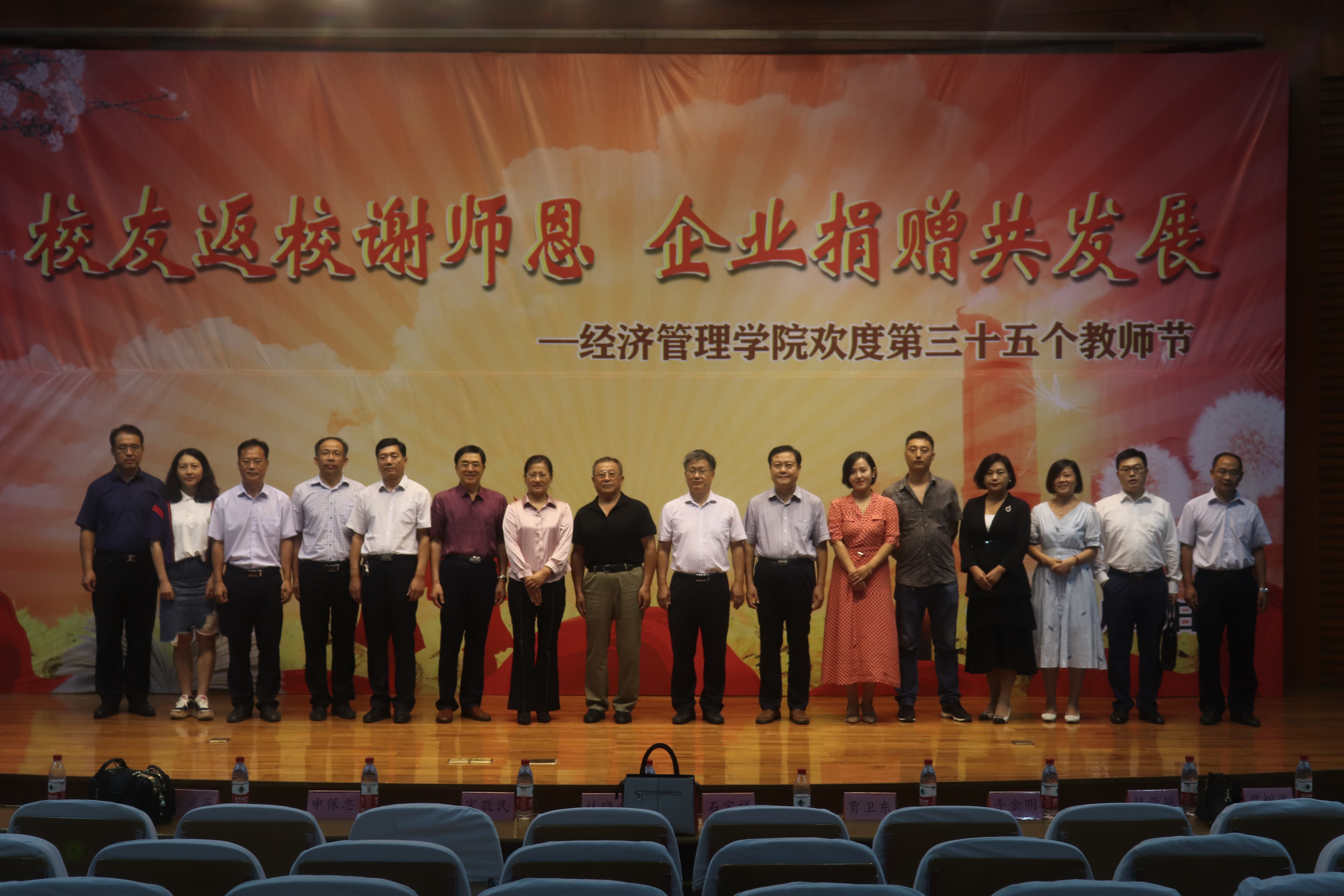 最后,全场起立合唱《我和我的祖国》,献礼祖国70华诞。经济管理公司第三十五个教师节活动在歌声中圆满结束。活动结束后,与会领导、嘉宾、员工在学苑会堂合影留念。