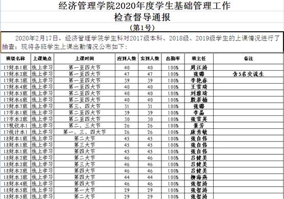 附:2020年2月17日线上教学课堂考勤情况通报: