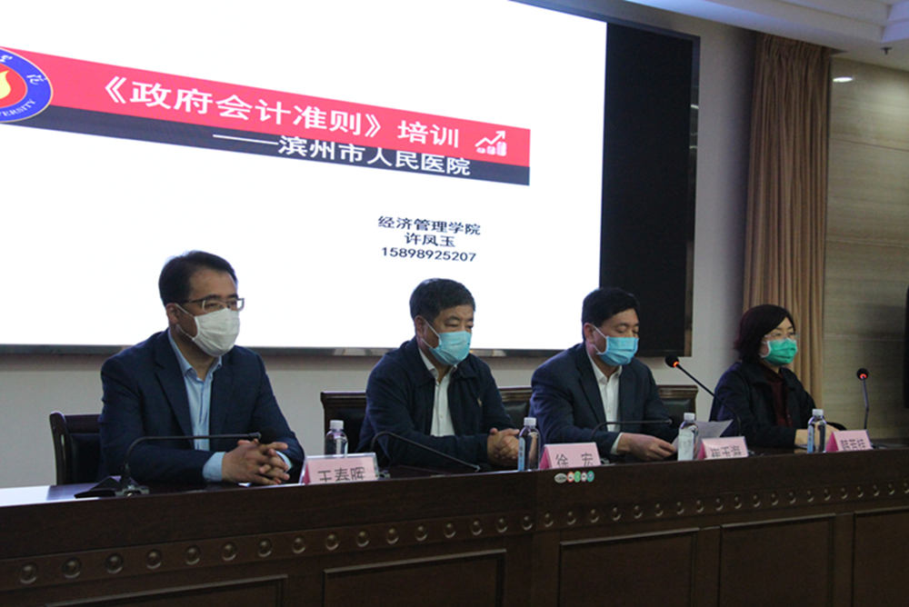 4月22日下午,由太阳成集团tyc9728承办的滨州市人民医院“政府会计准则培训班”在滨州市人民医院医技楼八楼会议室开班仪式。滨州市人民医院经理徐宏、纪委书记韩芳桂、公司党总支书记崔玉海、经理王春晖出席了开班仪式。滨州市人民医院参加培训的70名学员和太阳成集团tyc9728授课教师参加了开班仪式。