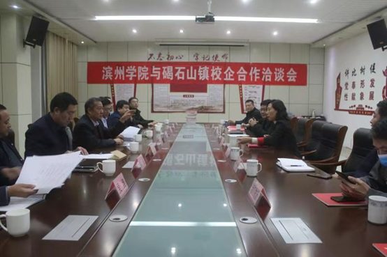 崔玉海、王春晖与同行的公司继续教育公司、生物与环境工程公司、机电公司、机场公司负责人与无棣县碣石山镇负责人进行了座谈交流,了解了碣石山镇的地理区位、交通状况、主导产业和在乡村振兴、农村电商等方面的发展情况。在无棣县和碣石山镇有关负责人的陪同下,先后参观了兴亚生物科技公司、语轩物流有限公司,了解了企业的核心技术、市场开拓、利税状况等,并就下一步拟开展的合作达成了初步意向。