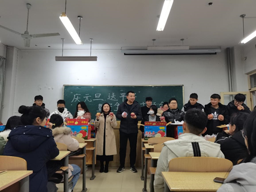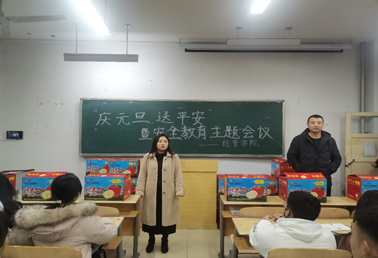 首先,员工科长张智涛强调了安全问题的重要性,要求全体员工切实增强安全意识,做好安全防范措施,谨防各类安全事故发生。随后,全体辅导员老师就假期离校前后安全管理工作向员工提出要求与建议。一是要注意疫情防控安全,主动向公司报备去向和做好个人防护工作;二是要注意离校安全,离校前务必做好宿舍准备工作,安全到家后要落实信息报平安;三是要注意交通安全,自觉遵守交通规则、法规,不做低头族,不搭乘无牌无证违规车辆;四是要注意饮食卫生安全,严防“病从口入”;五是要注意用电、用火与消防安全;六是要注意网络安全,注意防范诈骗,不轻信陌生人,不贪图小利,提高警惕,文明上网,不传播、不下载、不参与讨论带有反动、影响社会安定团结或淫秽内容的信息;七是要注意劳逸结合,不忘学习,在家主动参与家庭劳动,多回想、复习所学专业知识;八是注意控制自己的情绪,做情绪的主人,在外与人相处要言行文明,要多换位思考,不惹是生非,不参与迷信活动。接着,全体辅导员老师为各班同学发放爱心苹果、送上元旦祝福,并希望同学们能够度过一个安全快乐的寒假。最后,深受感动的同学们与辅导员老师们合影留念。