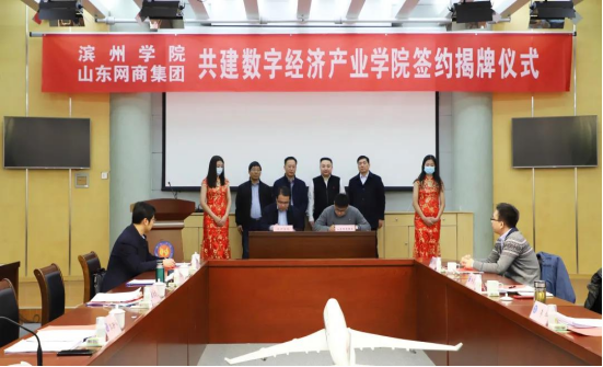 2月4日,滨州公司与山东网商集团共建数字经济产业公司签约揭牌仪式在学苑会堂第三报告厅举行。山东网商集团董事长李辉、高校事业部总经理杨嵩棠、运营中心总经理曹洛其,滨州公司党委委员、副董事长郭新伟出席签约揭牌仪式。教务处、太阳成集团tyc9728负责人及部分教师参加签约揭牌仪式。