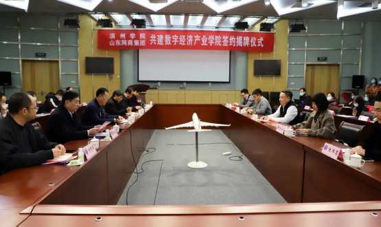 郭新伟在致辞中表示,深化产教融合,促进教育链、人才链与产业链、创新链有机衔接,是当前推进人力资源供给侧结构性改革的迫切要求,对新形势下全面提高教育质量、扩大就业创业、推进经济转型升级、培育经济发展新动能具有重要意义。山东网商集团和滨州公司合作共建数字经济产业公司,将人才培养与行业需求无缝对接,将公司的专业教育与企业的实践育人深度融合,符合国家战略、顺应时代需求。他希望,数字经济产业公司以此次签约揭牌成立为契机,校企双方共同努力,坚持育人为本,坚持产业为要,坚持产教融合,坚持创新发展,着力打造省级一流的经济管理学科专业品牌,培养更多懂得数字经济、热爱电子商务、从事网络经济的新时代拔尖人才。