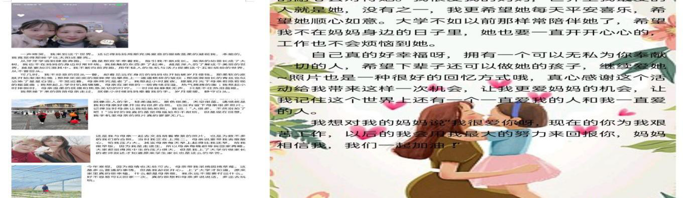 此次活动不仅是定格母亲的美丽瞬间,更是回忆并感恩父母之爱,散发出的浓浓亲情也使同学们感受到母亲的温暖,这份深厚的感情将激励全体同学们不畏艰难,勇往直前。