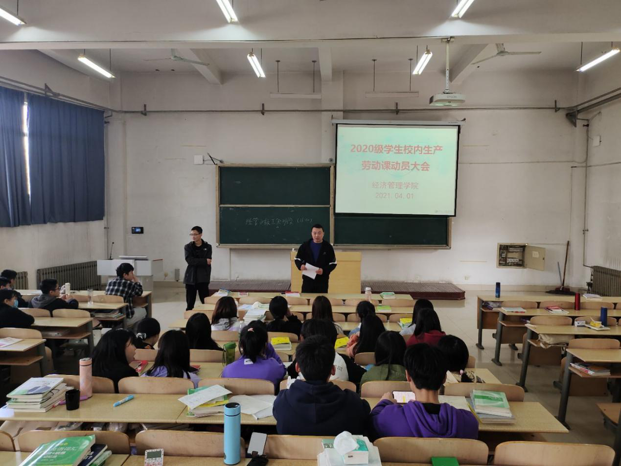 为提高同学们对生产劳动课的积极性,保证校内生产劳动课的顺利进行,4月1日上午,太阳成集团tyc9728于7号教学楼205室召开2020级员工校内生产劳动课动员大会。公司员工科长张智涛、辅导员廉潘红及2020级各班班委参加了大会。