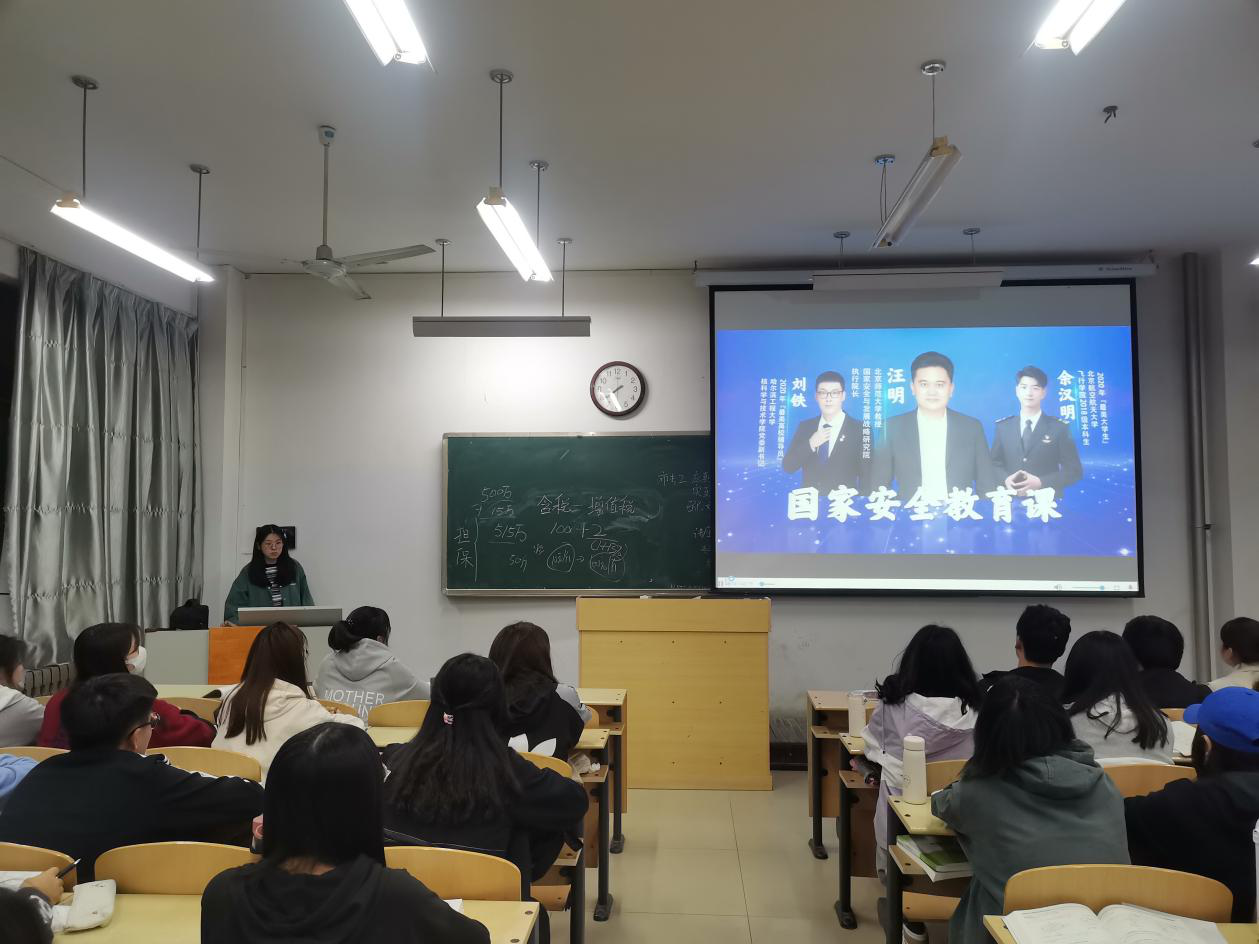 国家安全关系到每一个人,是国家发展社会进步和人民幸福生活的重要保障。今年全民国家安全教育日的主题是践行总体国家安全观,统筹发展和安全,统筹传统安全和非传统安全,营造庆祝建党100周年良好氛围。各班围绕主题、结合实际,利用多媒体教室、寝室等场所观看《千万师生同上一堂国家安全教育课》。北京师范大学教授、国家安全与发展战略研究院执行经理汪明,2020年最美高校辅导员、哈尔滨工程大学核科学与技术公司党委副书记刘铁、北京航空航天大学飞行公司2018级本科生余汉明共同为全国师生讲授《树立总体国家安全观, 以实际行动维护和塑造国家安全》视频公开课。通过观看国家安全教育课,同学们了解了什么是国家安全,国家安全包括哪些方面以及国家安全的重要性。