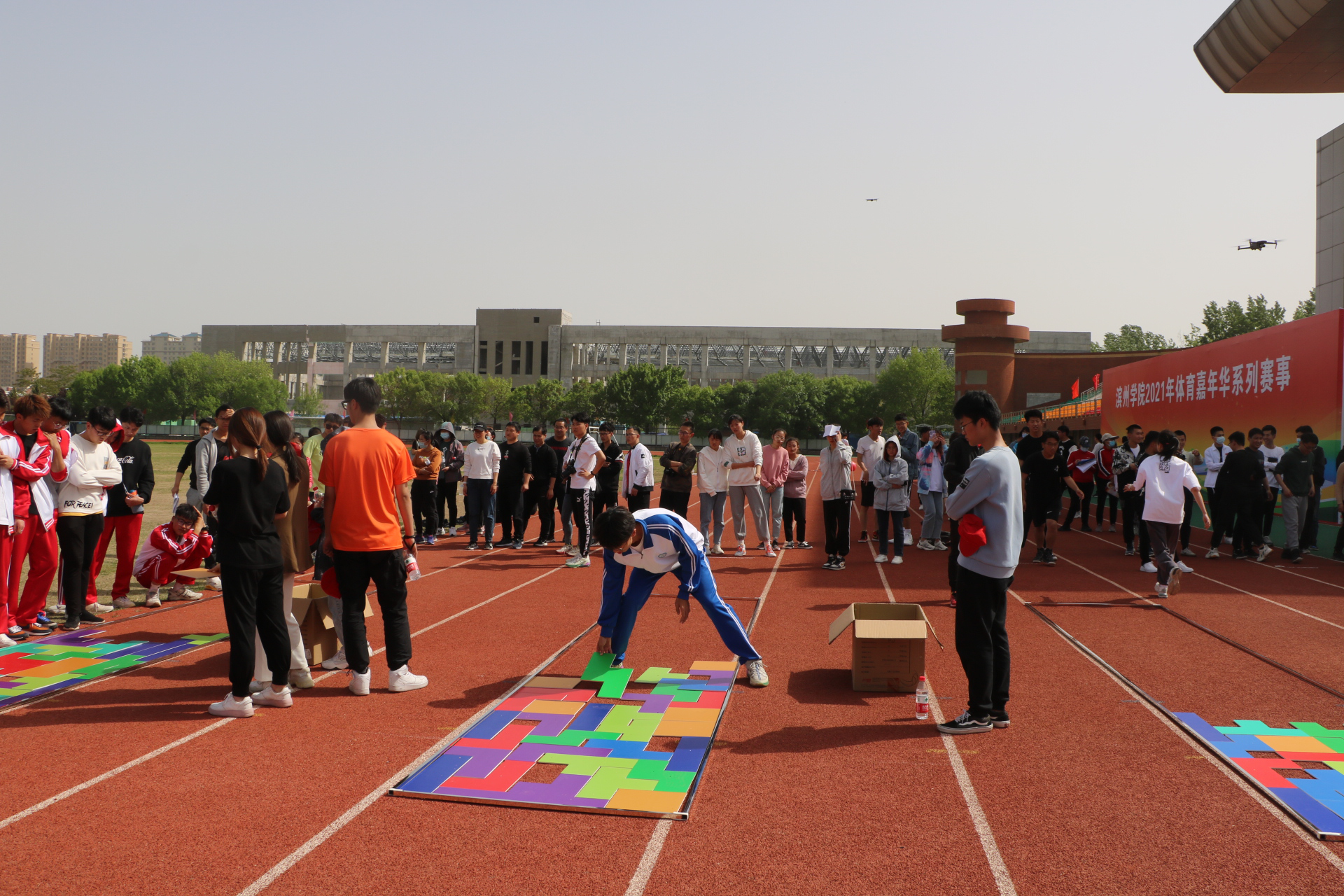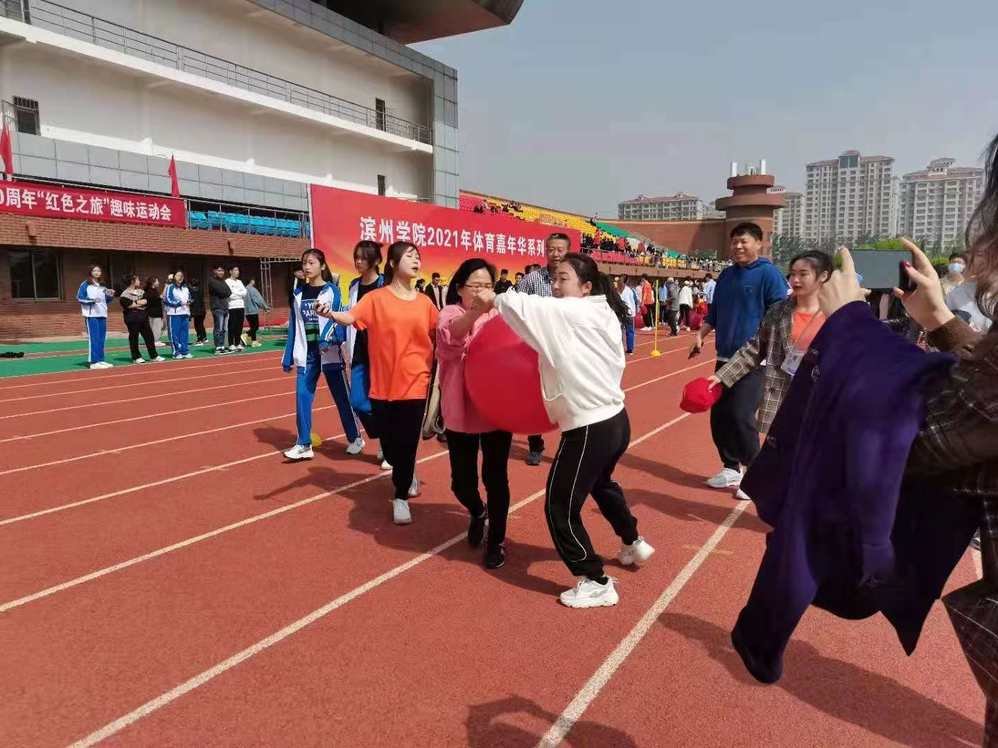 4月27日,滨州公司2021年体育嘉年华系列赛事活动启动仪式暨建党100周年“红色之旅”趣味运动会开幕式在田径运动场举行。太阳成集团tyc9728师生积极组队参加,并在趣味运动会中斩获教工组总分第五、员工组总分第四的佳绩。