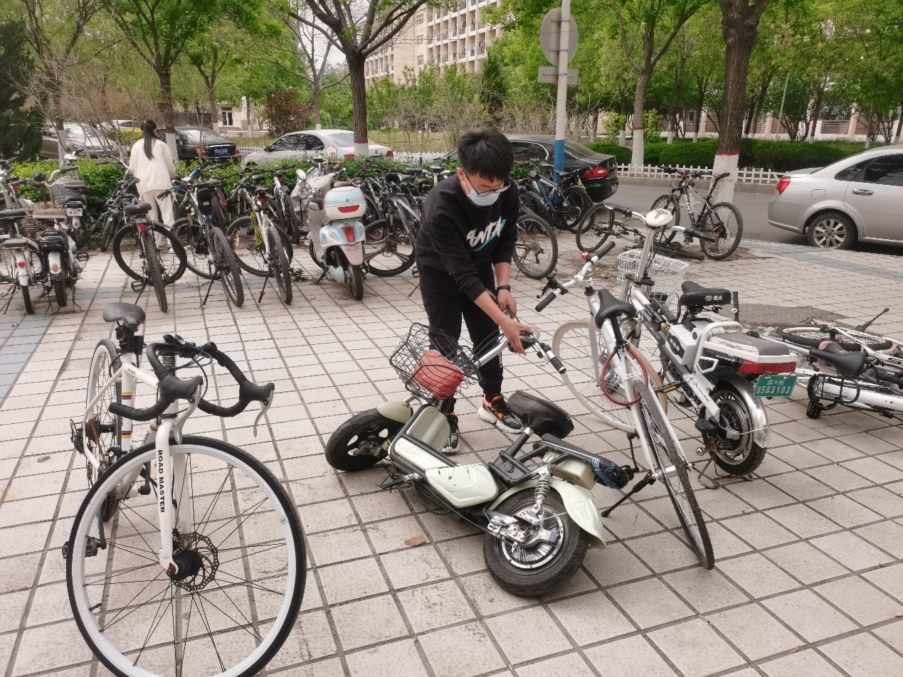 活动中,公司志愿者们分工协作,吃苦耐劳,真正将服务和奉献体现在行动中。在6教与7教之间以及二餐和三餐前后的非机动停车位区域中,员工会成员和参加生产劳动课的同学们将摆放不整齐的自行车统一摆放在指定位置,同时向同学们宣传文明停放自行车理念,劝导未按规定摆放自行车的同学将车辆主动停放在自行车停车区。通过志愿者们的共同努力,原本散乱的车辆井然有序地排列着,这不仅改善了非机动停车位区域中自行车乱停乱放的情况,还加深了同学们对“创建美丽文明校园”的理解。