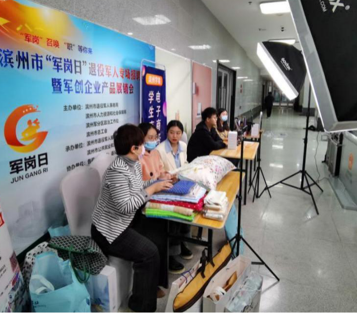 4月30日上午,由滨州市退役军人事务局、滨州市人力资源和社会保障局、滨州军分区政治工作处和滨州市总工会联合承办的山东省退役军人“军岗日”专场招聘活动暨军创企业产品展销会在滨州市总工会一楼大厅启动。滨州市副市长、市公安局局长赵永生出席活动并致辞。市工人文化宫党支部书记孙战洪、滨州公司公司党总支书记崔玉海、继续教育公司社区教育科副科长蔡传金参加活动。