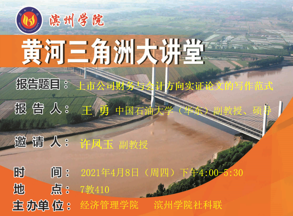 黄河三角洲大讲堂预告:上市公司财务与会计方向实证论文的写作范式