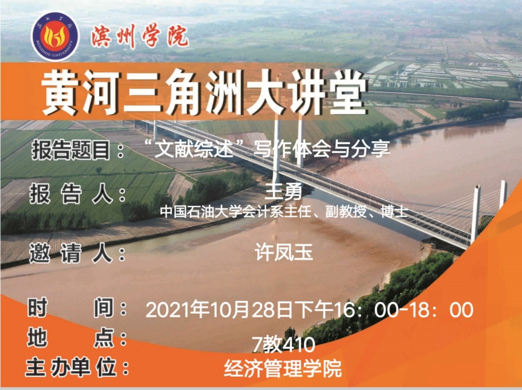 黄河三角洲大讲堂本期报告题目为:“文献综述”写作体会与分享