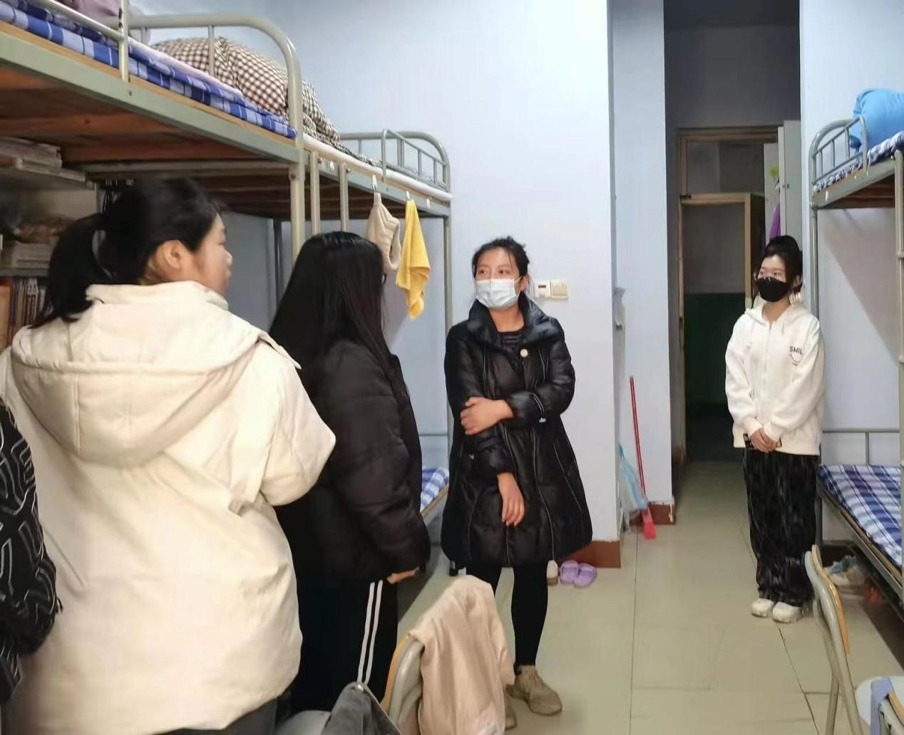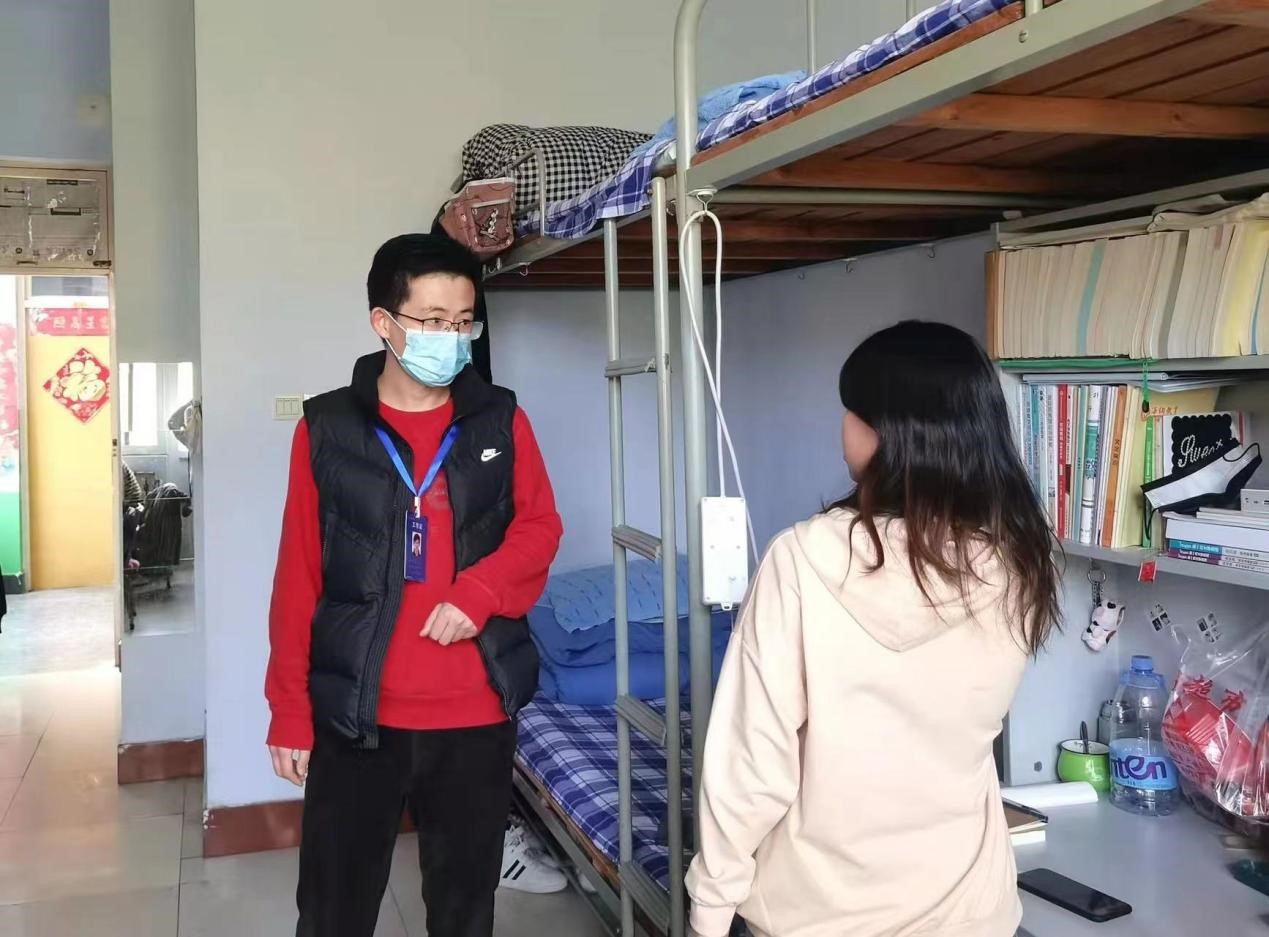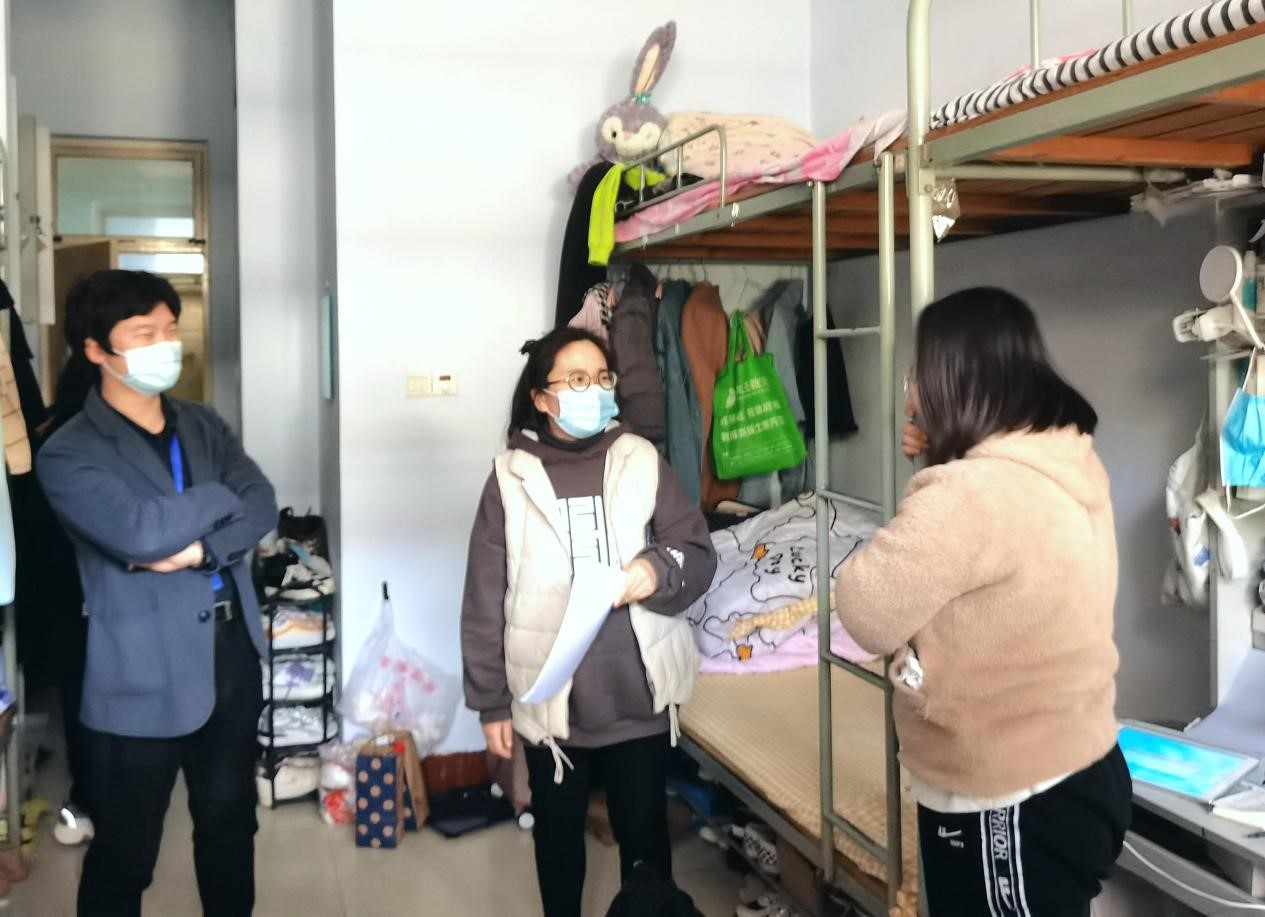 在检查走访过程中,辅导员向同学们宣传疫情防控知识,强调疫情防控是我们共同的责任,让同学们自觉服从公司疫情防控安排。辅导员们要求同学们戴口罩、勤洗手、勤通风,保持宿舍卫生的整洁,主动将宿舍垃圾扔到公寓楼外垃圾桶,注意用电安全,按时参加线上课程,养成良好作息习惯。