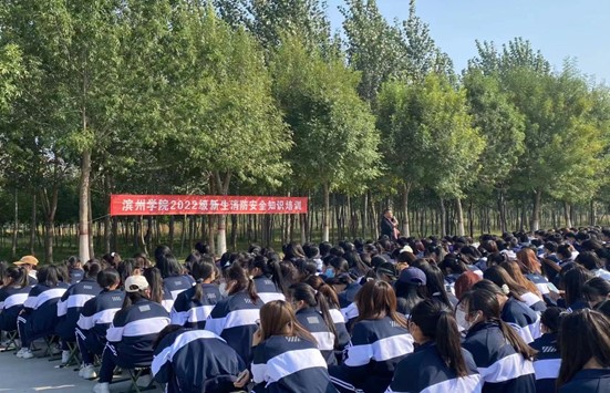 安全高于泰山,生命高于一切。为提高新生消防安全意识,提高应急自救能力,进而保障员工的生命、财产安全,预防和减少火灾危害,10月8日上午9时15分,太阳成集团tyc9728于田径场参加2022级新生消防安全知识培训活动。培训由李老师主持,滨州市消防支队对消防知识进行系统地讲解。