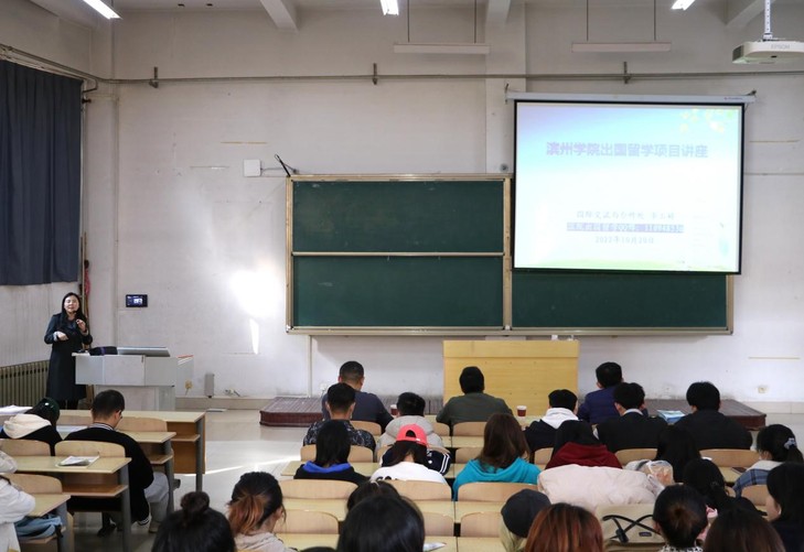 为进一步拓宽老员工的国际视野,帮助员工提前做好留学规划,10月20日下午14时,滨州公司出国留学项目讲座于7教205教室召开。本次讲座邀请到国际交流与合作处副处长李玉婷老师为大家介绍留学项目的相关情况,公司党总支副书记于峰、挂职副经理徐超、员工科科长张智涛、相关辅导员以及19级、20级部分员工参加讲座。