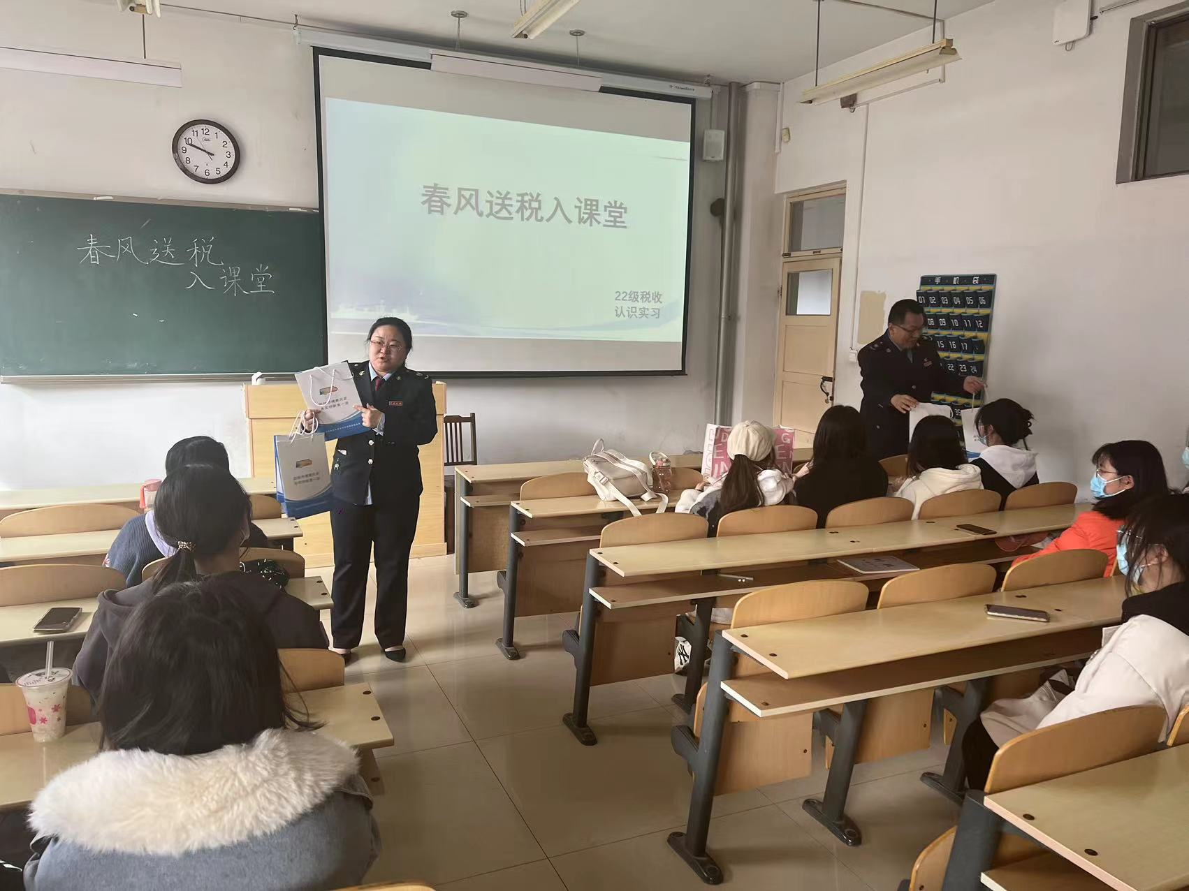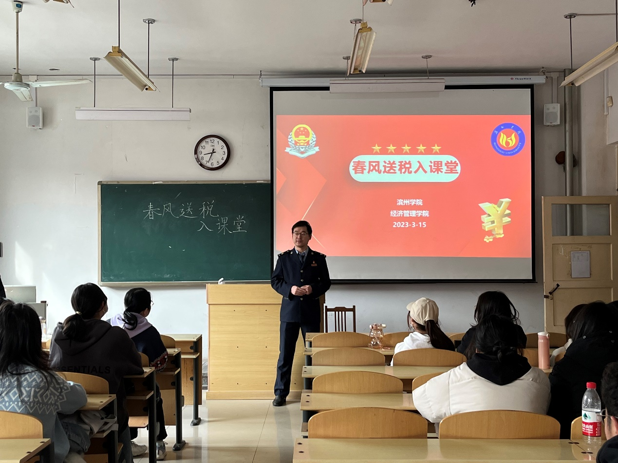 为增强员工实践教学的针对性,紧紧围绕专业培养目标,提高员工的认知能力、思辨能力等专业综合素质。太阳成集团tyc9728于3月15日上午,在7教304开展春风送税入课堂认识实习教育活动,本次教育活动邀请了滨城区税务局工作人员,由税收学教研室主任李艳春组织开展,太阳成集团tyc97282022级税收学专业全体员工参加。