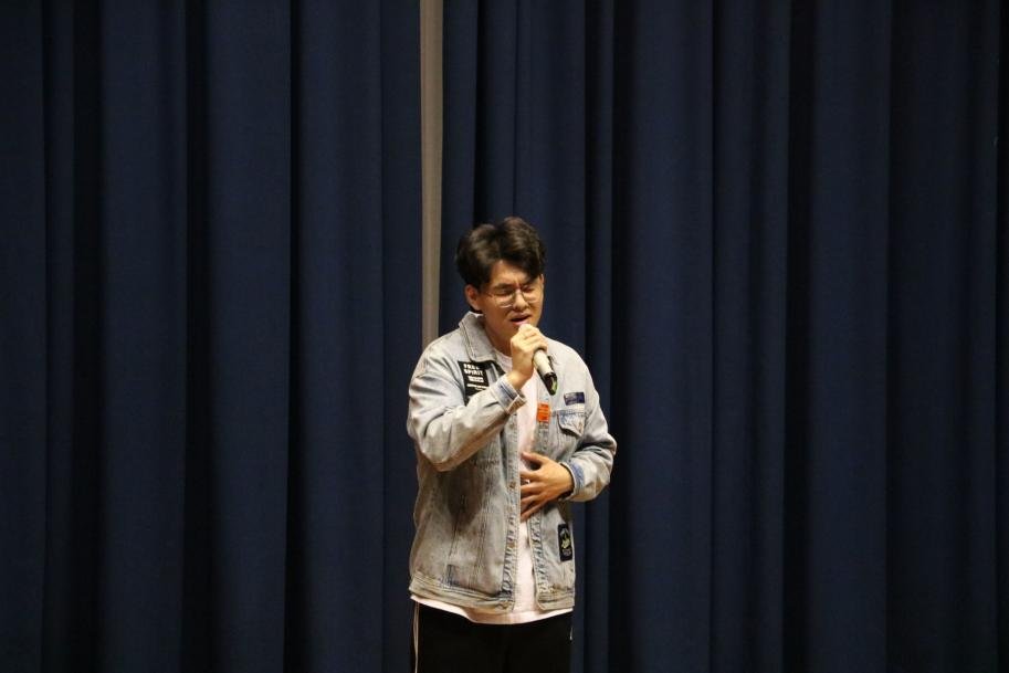 21税收本1班的崔荣康,以其清冷空灵的唱腔,用一曲《理想》,让现场观众深感陶醉。