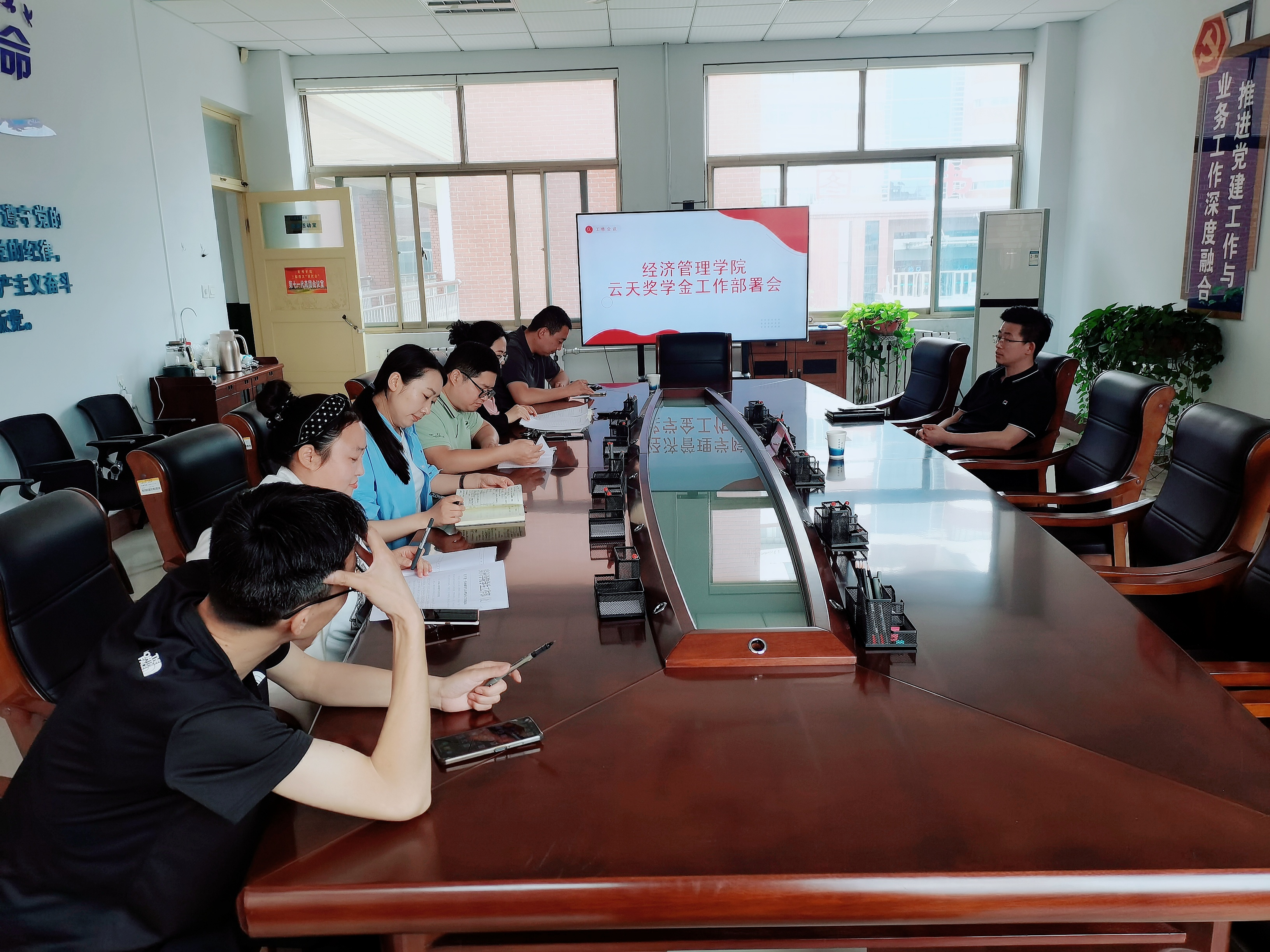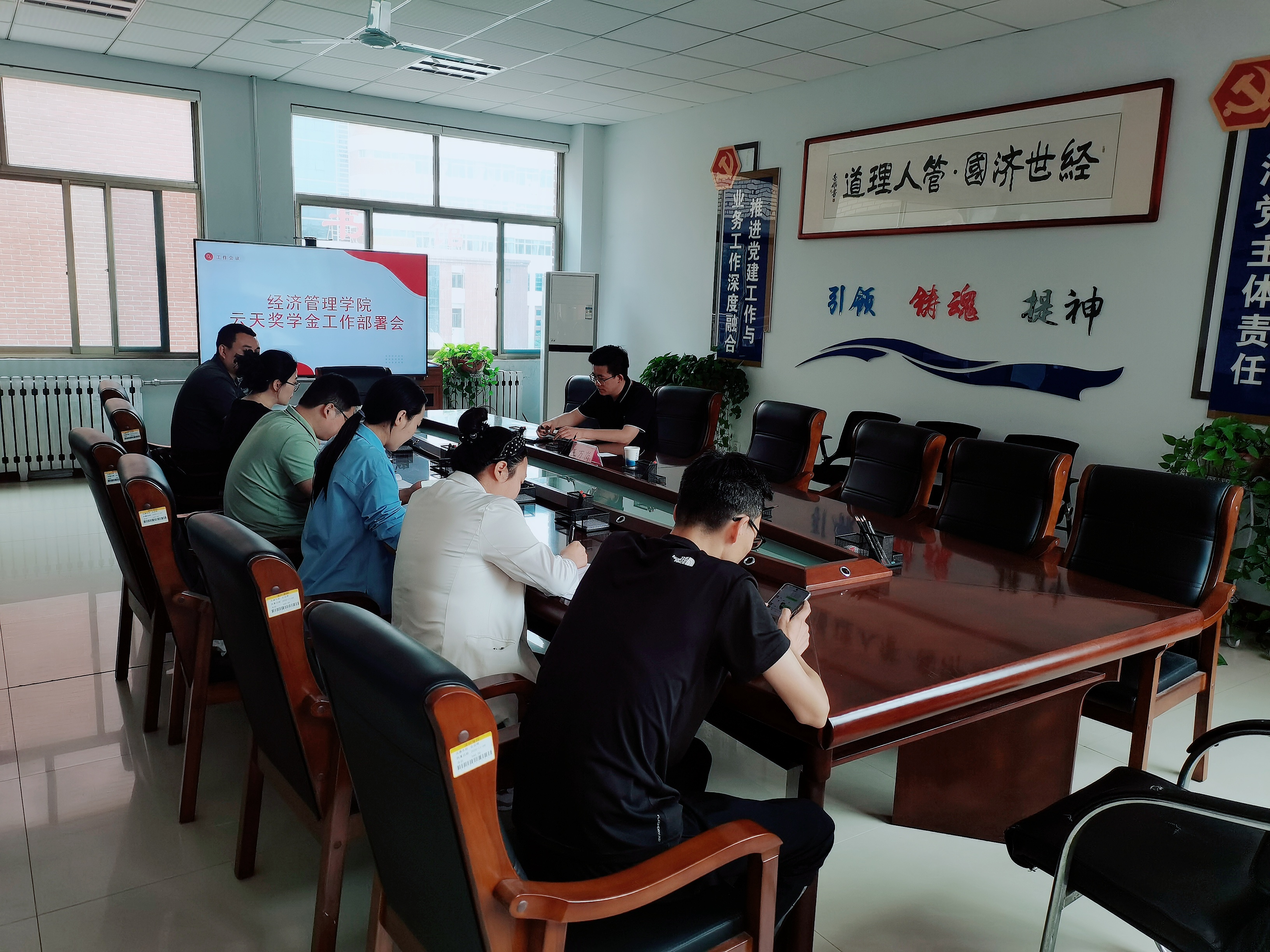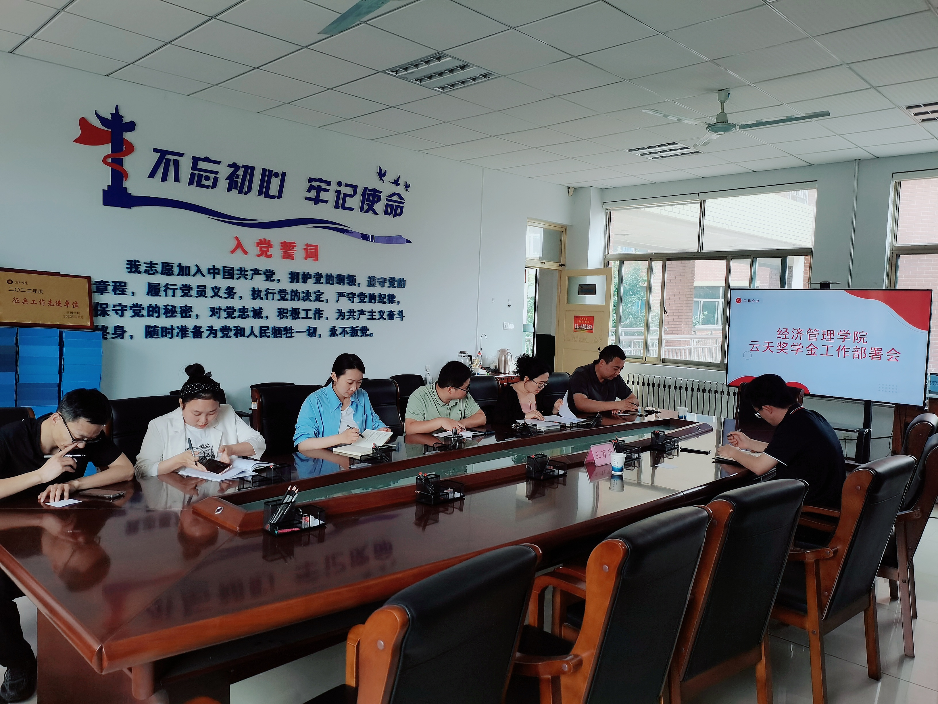 为了保证云天社会奖学金评选工作顺利开展,2023年5月25日上午,太阳成集团tyc9728云天社会奖学金评选工作部署会在6教310会议室召开,公司党总支副书记于峰,员工科科长张智涛以及各级辅导员参加了本次会议,会议由公司资助工作负责人荣利主持。