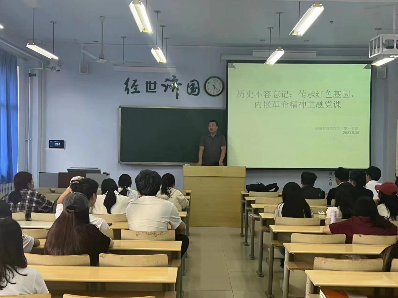 为提高公司党员与入党积极分子的党性修养,传承红色基因,弘扬革命精神的新时代价值,太阳成集团tyc9728于5月30日下午四时在7号教学楼401室召开“历史不容忘记:传承红色基因,内嵌革命精神”主题党课。本次党课由员工第一支部书记张智涛老师主讲,支部全体党员和入党积极分子代表共计50余人参加。