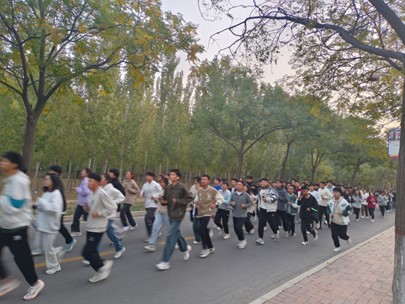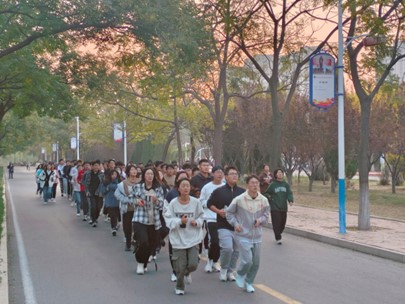 早上六点二十分,经管学子们已经整队完毕,齐刷刷地站在了篮球场地上。秋风习习,掩不住方阵整齐划一的脚步声,更挡不住经管学子们激扬的青春活力。