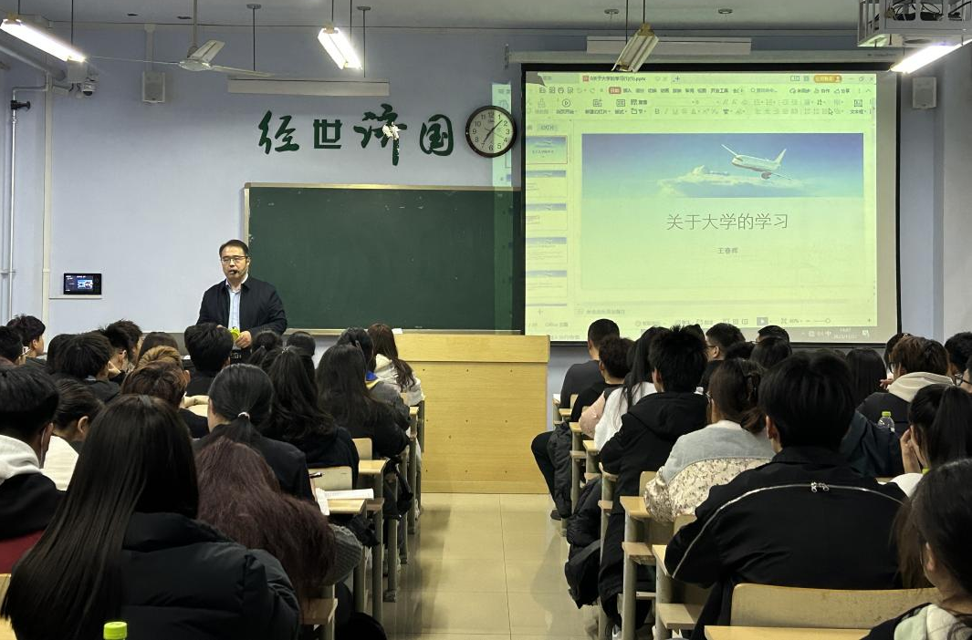 王春晖经理以目前新生学习生活中出现的问题为切入点,从如何适应大学的学习,大学学什么以及如何规划自己的学习等方面,并结合自身的工作和求学经历,向在场师生讲述了作为当代老员工应该从哪些方面着手培养自己的能力,成为祖国的栋梁之才和社会主义的合格建设者。