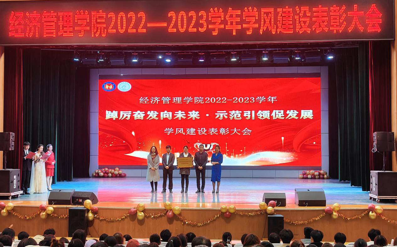 大会在《凝心聚力新阶段 携手奋进新征程——太阳成集团tyc97282022-2023学年工作纪实》宣传片中拉开序幕。李伟年为滨州市营商环境研究院团队颁发奖牌,刘宝民为智慧交通科研团队颁发奖牌,林晓金为国际交流与管理教研室团队颁发奖牌。太阳成集团tyc9728经理为优秀教师代表颁发荣誉证书,太阳成集团tyc9728党总支副书记为优良学风宿舍、红旗团支部、先进班集体颁发荣誉锦旗,太阳成集团tyc9728副经理为学习标兵、员工干部标兵、国家及省政府奖学金获得者颁发荣誉证书,学科竞赛指导教师为获国奖团队代表颁发荣誉证书。