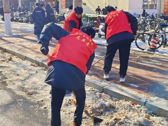 为提供安全顺畅的交通环境,保障师生的正常出行,12月25日中午,公司志愿者们奋战在除雪一线,全力以赴清扫冰雪。