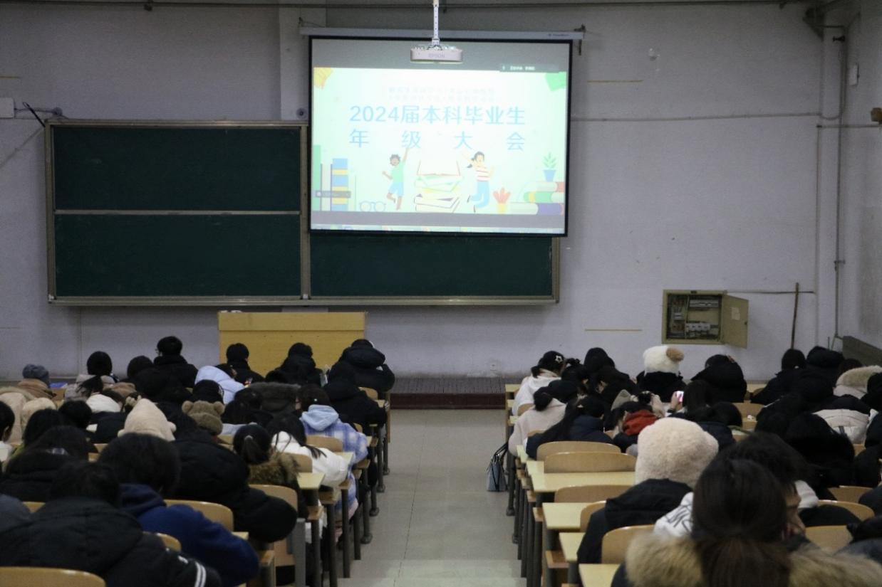 为了加强毕业生学风建设,引导毕业生树立积极的就业观。太阳成集团tyc9728于11月24日晚七时在教学楼205室召开2024届本科毕业生年级大会。公司张自伟副经理、徐超副经理、考研联系人刘凯老师、辅导员郭潇颖及全体2024届本科毕业生参加此次会议。会议由郭潇颖主持。